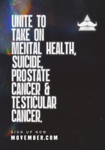 Unite to take on mental health, suicide, prostate cancer and testicular cancer poster.