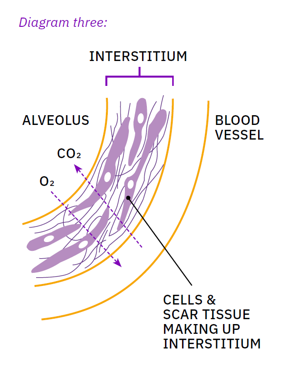 You might be told by your medical team you have ‘lung scarring’ or ‘pulmonary fibrosis’. On this page, we talk about pulmonary fibrosis.